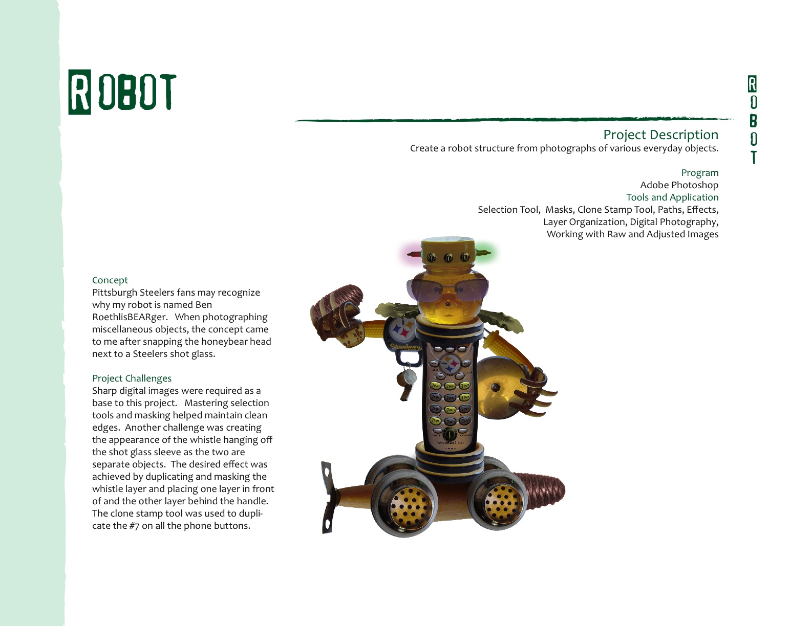 Create a robot structure from photographs of various everyday objects using Photoshop.