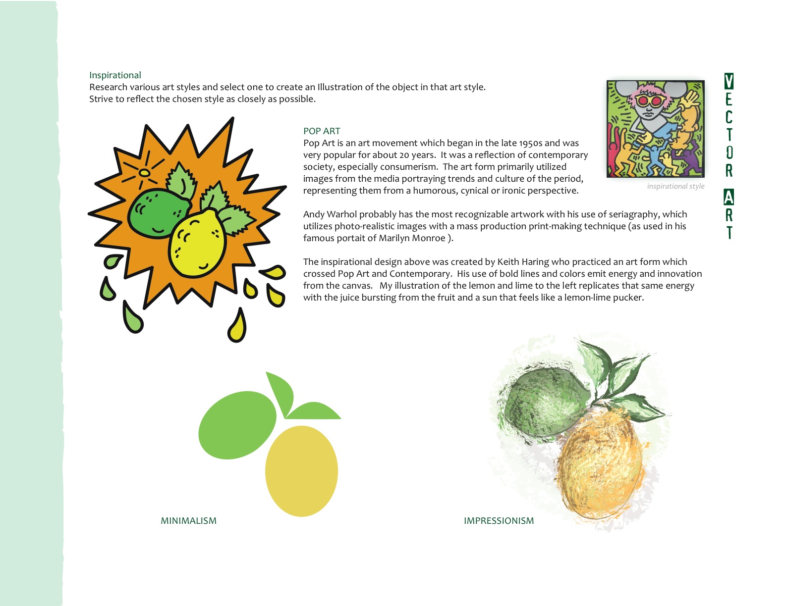 Choose an object and create a vector rendering in an inspirational style using Illustrator.